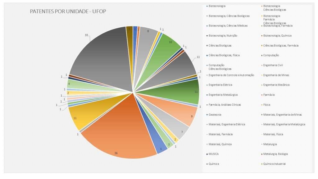 • Ouro Preto: 151 patentes registradas de 2012 a 2022, com a Universidade Federal, sendo 36 no segmento de farmácia e 33 de química